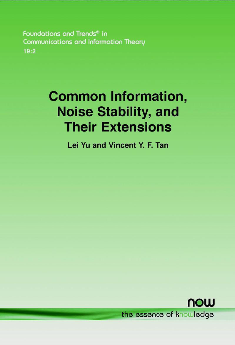 MonographLei Yu, The Entropy Method, Preprint, Jul. 2023. [link] (Slides of this monograph can be found at the bottom of this homepage.) Lei Yu and Vincent Y. F. Tan, Common Information, Noise Stability, and Their Extensions, Foundations and Trends® in Communications and Information Theory, Vol. 19, No. 2, Pages 107 – 389, 2022. [link][arxiv]